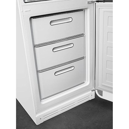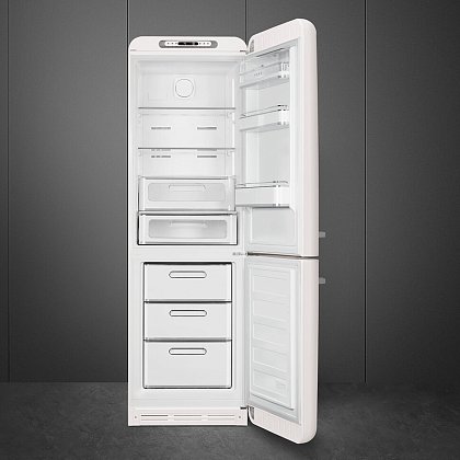 Холодильник SMEG FAB32RWH5 предназначен для кратковременного хранения различных готовых блюд, охлаждённых продуктов и напитков, а также для заморозки и длительного хранения замороженных продуктов и полуфабрикатов. Полки изготовлены из закалённого стекла, благодаря чему выдерживают большую нагрузку. Полки на дверцах выполнены из пластика. Данная модель идеально подойдёт для авторских интерьеров в уникальном стиле или для кухонь в классическом исполнении.