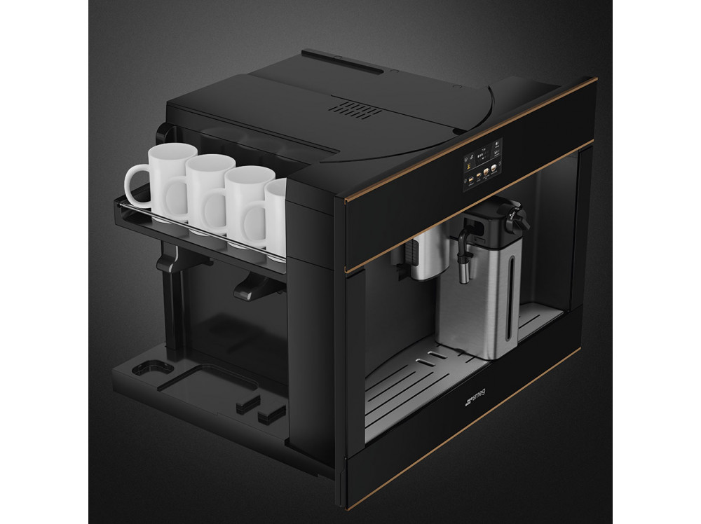 Встраиваемая кофемашина SMEG CMS4604NR, выполненная в современном дизайне, подчеркнёт индивидуальность интерьера и станет настоящим украшением Вашей кухни в квартире или загородном доме. Предназначена для приготовления эспрессо, капучино и других кофейных напитков.