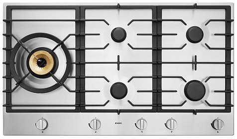 5 конфорок варочной панели Аско HG1986SB обладают различной мощностью, наиболее сильной является горелка Super Vario Wok с тройной короной. Для управления техникой используется механическая панель. Освоить поворотные переключатели сможет каждый член семьи. Они имеют удобное расположение по всей ширине утройства. Плавная регулировка интенсивности позволяет подбирать оптимальные условия тепловой обработки для каждого конкретного случая. Также прибор удобен своими размерами: ширина — 90 см, глубина — 52,6 см.